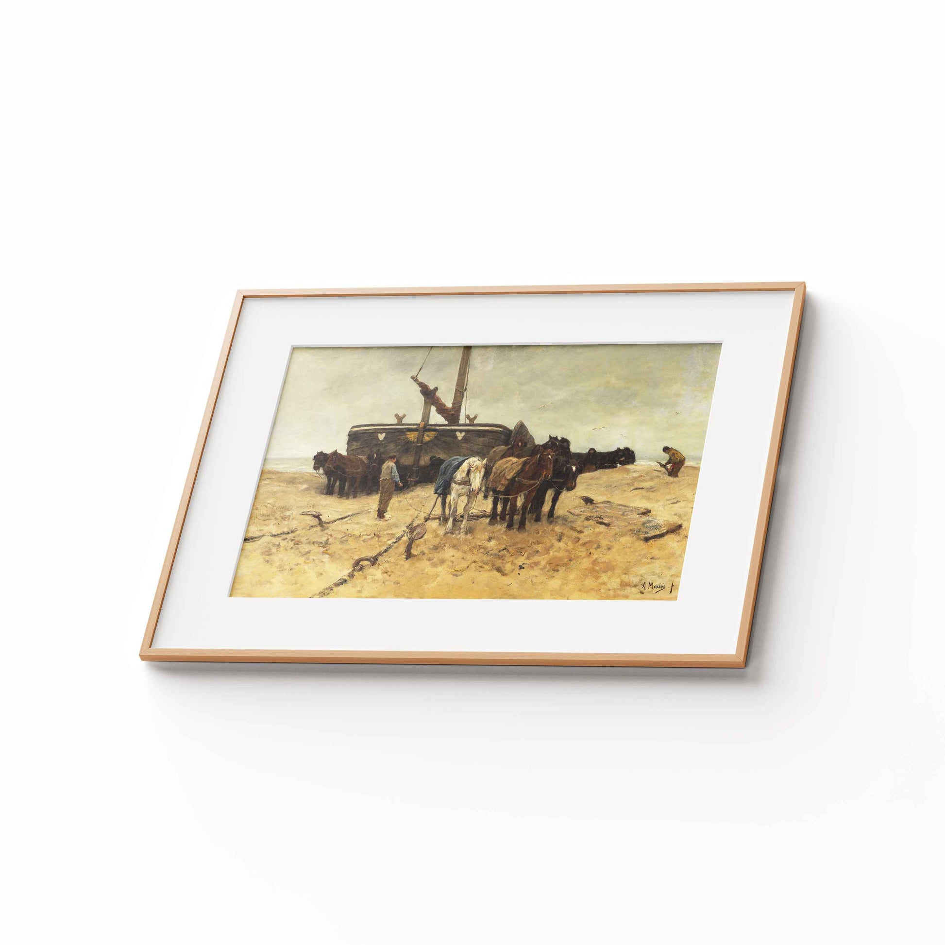 Experience the tranquil beauty of Anton Mauve's "Fishing boat on the beach, 1882." Indulge in the calming seaside scene, complete with a quaint fishing boat and serene beach. Let the stunning colors and masterful brushstrokes transport you to a peaceful paradise. Own a piece of art history today!