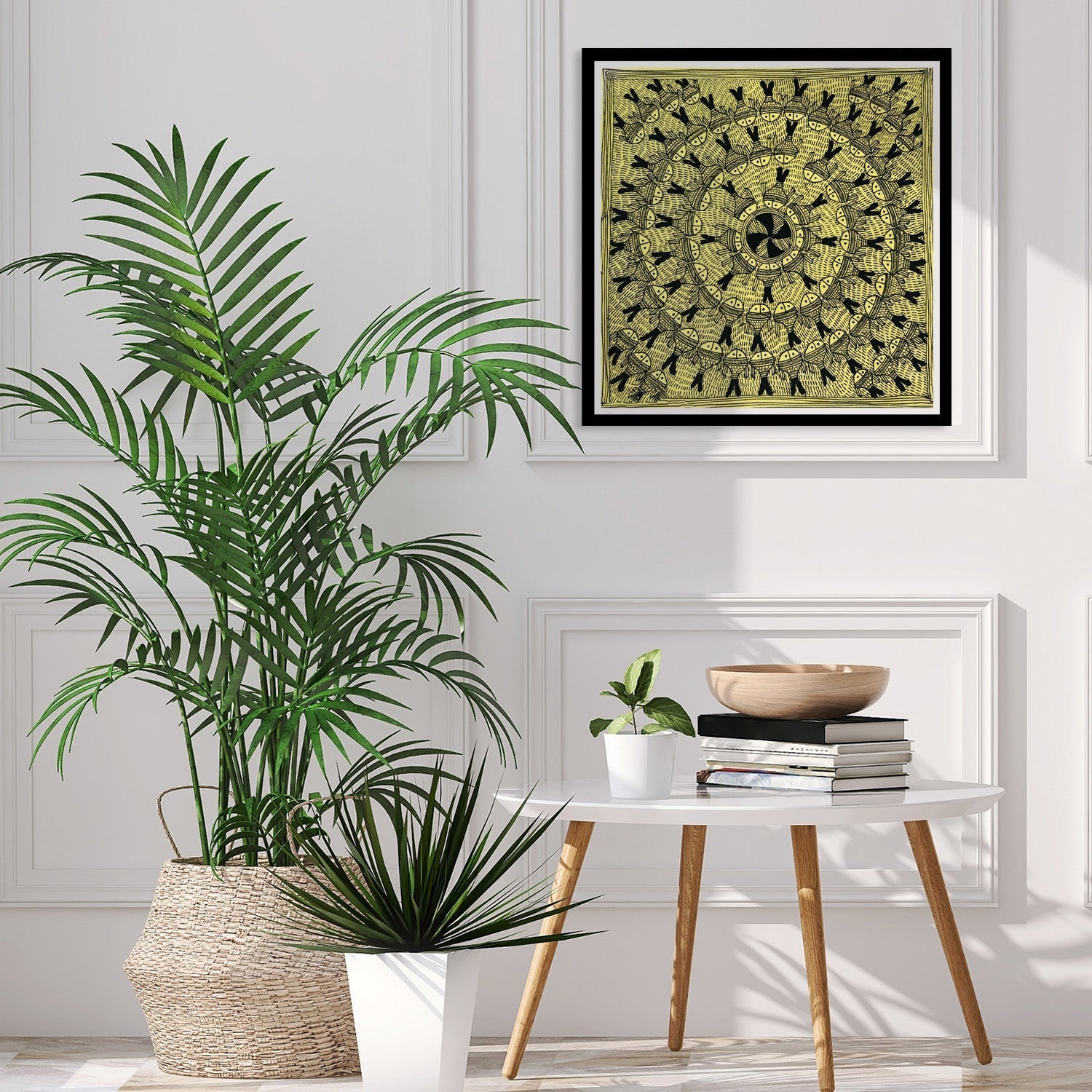 Beautiful Fishes Madhubani Painting, Framed Art