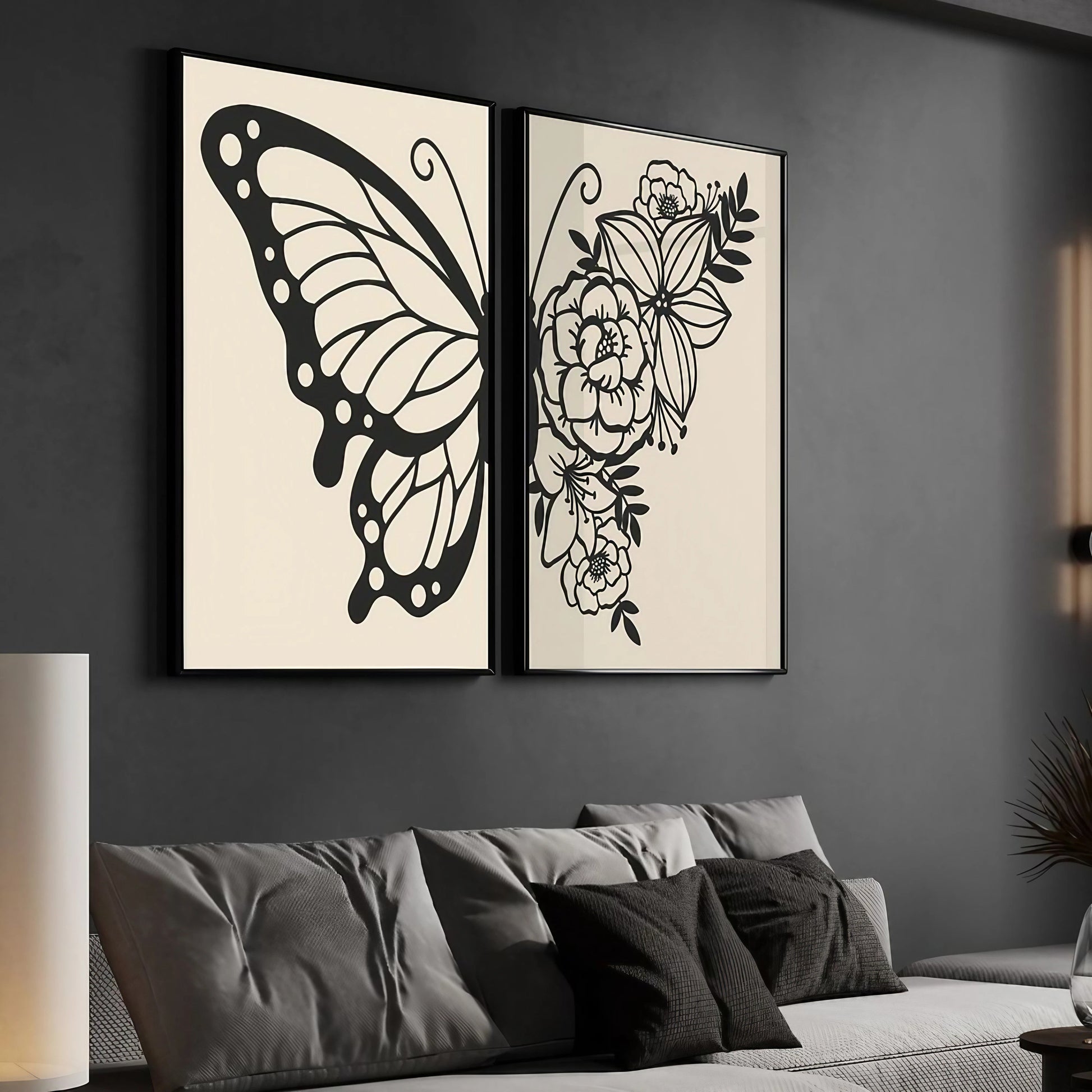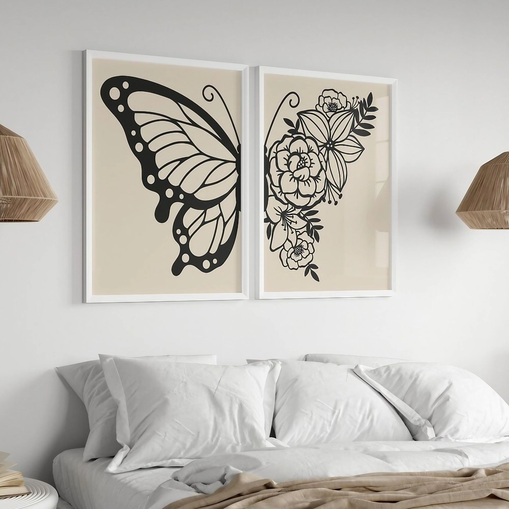 Botanical Black And White Bedroom Decor Wall Art Wall Frames Set of 2