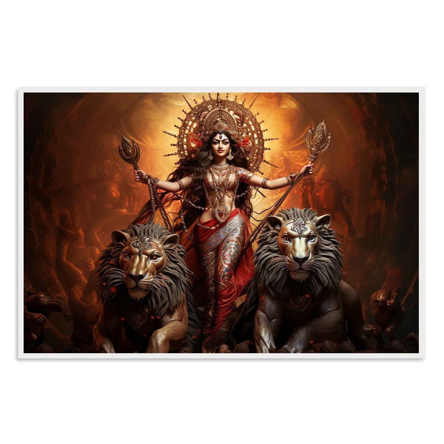 Witness the embodiment of Shakti. This artwork captures the essence of Durga Maa as the embodiment of divine feminine power, a source of inspiration and empowerment.