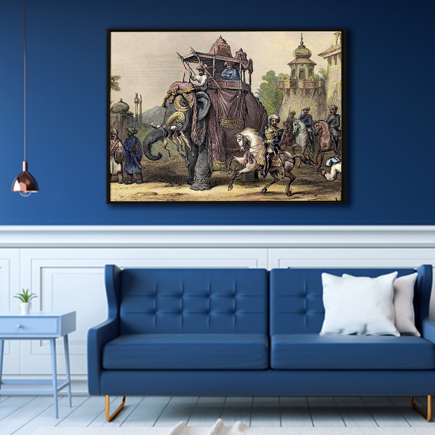 A Journey Through Mughal India: An Elephant and Camel Caravan Pass by a Fortressed Landscape Wall Painting