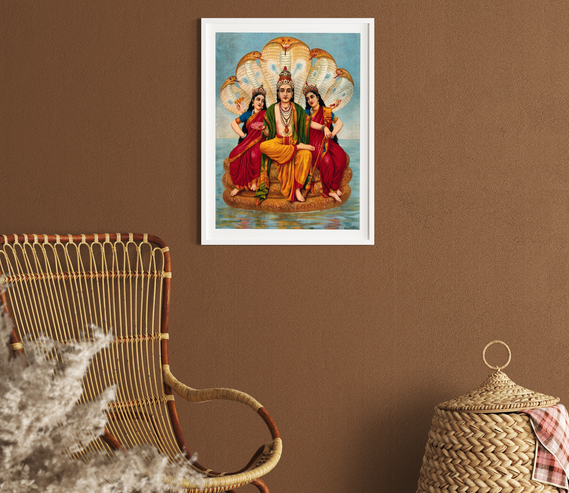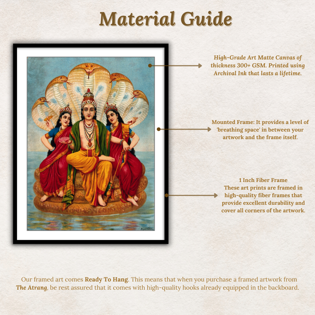 Vishnu flanked by two wives resting on Shesa by Raja Ravi Varma Wall Art